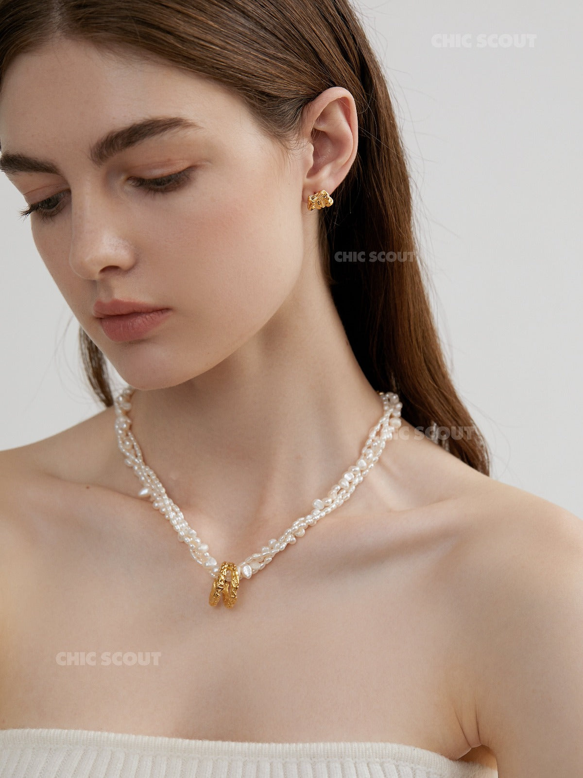 Materials: Real organically-shaped freshwater pearls. Stainless steel, 18k gold plating.