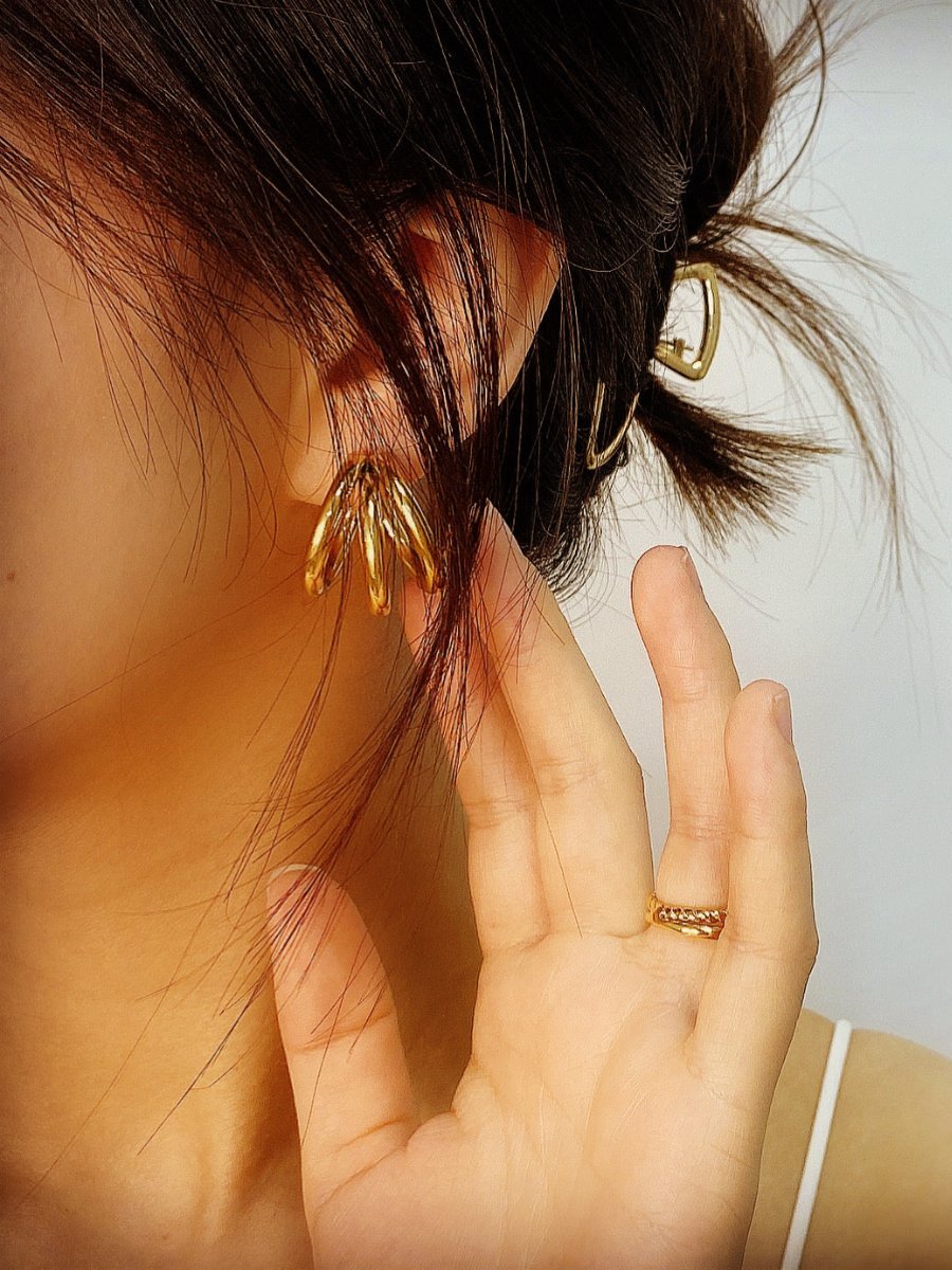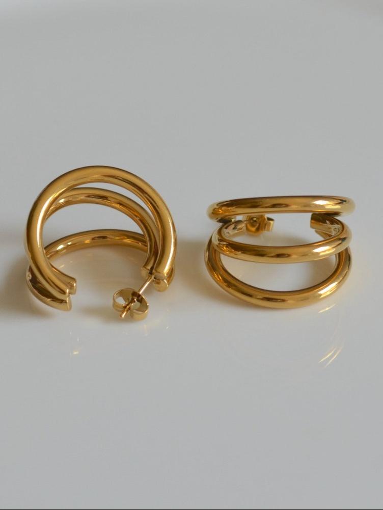 Triple Layered Hoop Earrings are a multi-level design that combines architectural aesthetics and the movement of streamlined curves.
